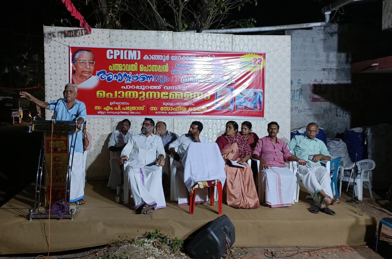 CP1 M കാഞ്ഞൂർ മുൻ ലോക്കൽ സെക്രട്ടറിയായിരുന്ന പന്മാവതി പൊന്നപ്പൻ അനുസ്മരണ സമ്മേളനം ജില്ലാ സെക്രട്ടറിയേറ്റംഗം എം.പി. പത്രോസ് ഉൽലാടനം ചെയ്തു.